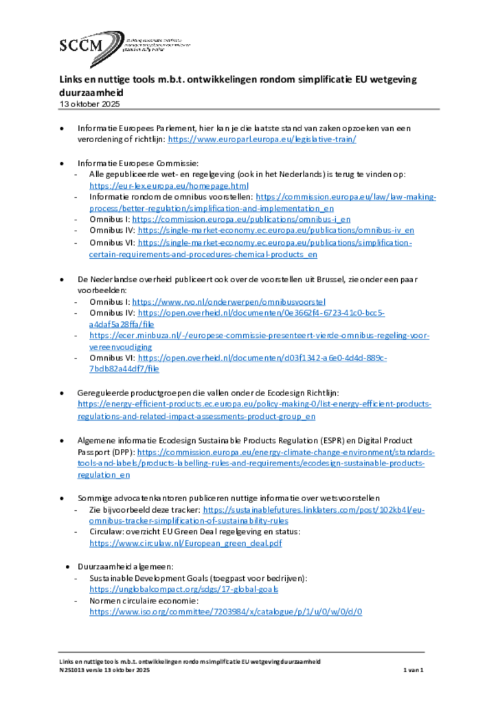 Webinar Vereenvoudiging van EU-wetgeving over duurzaamheid - overzicht links