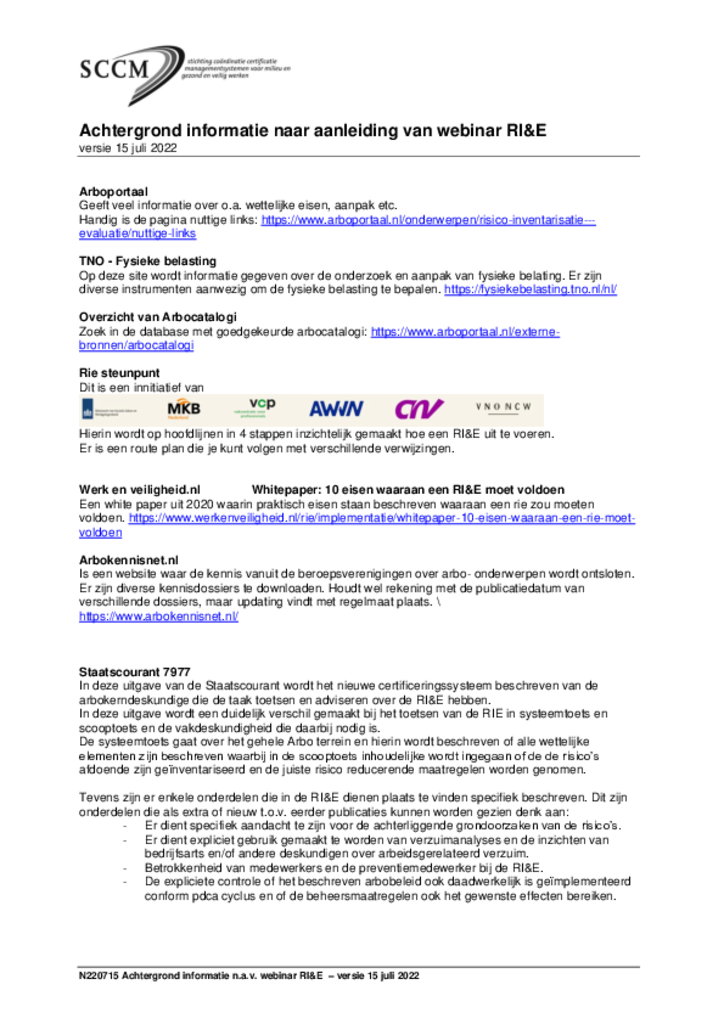 Webinar Risico-Inventarisatie & Evaluatie - achtergrondinformatie