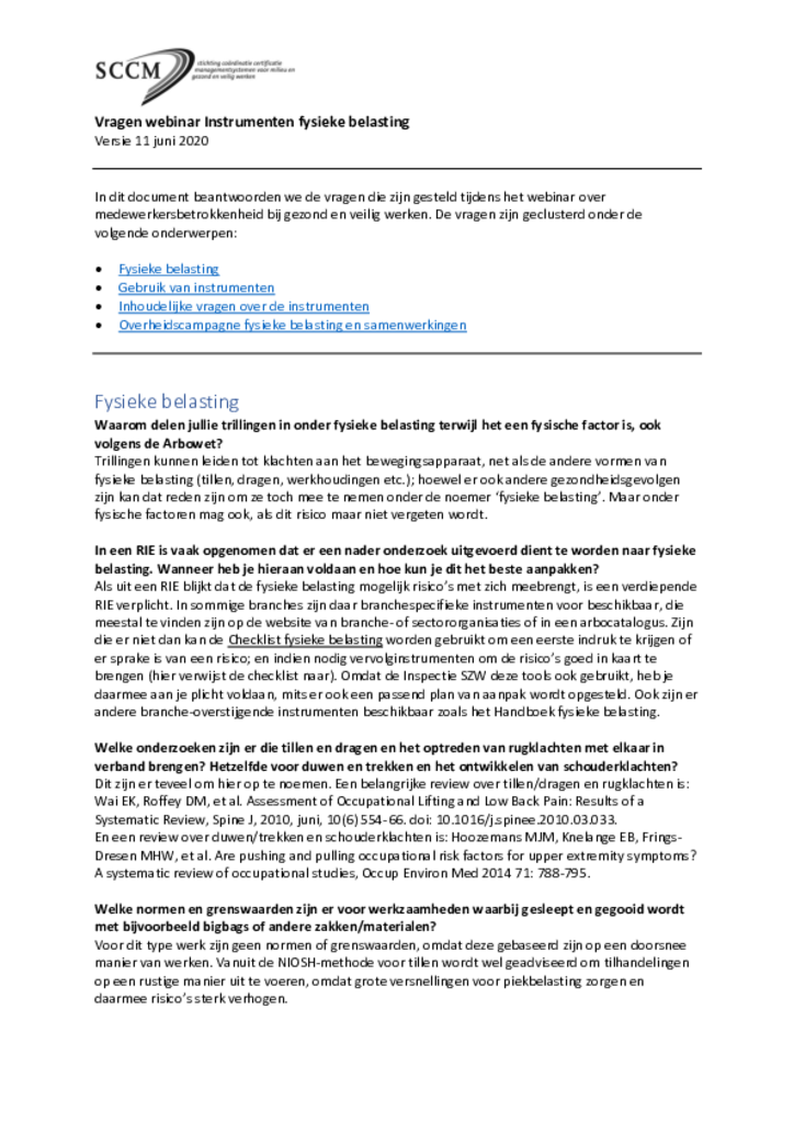 Webinar Instrumenten voor fysieke belasting op het werk - vragen en antwoorden