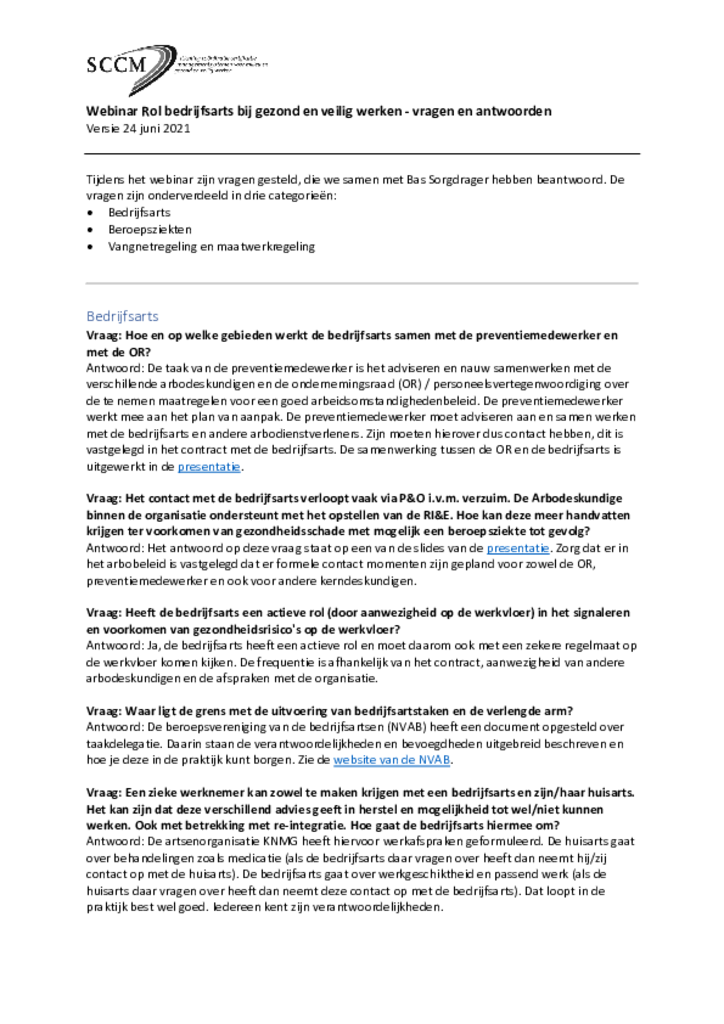 Webinar Rol bedrijfsarts bij gezond en veilig werken - vragen en antwoorden