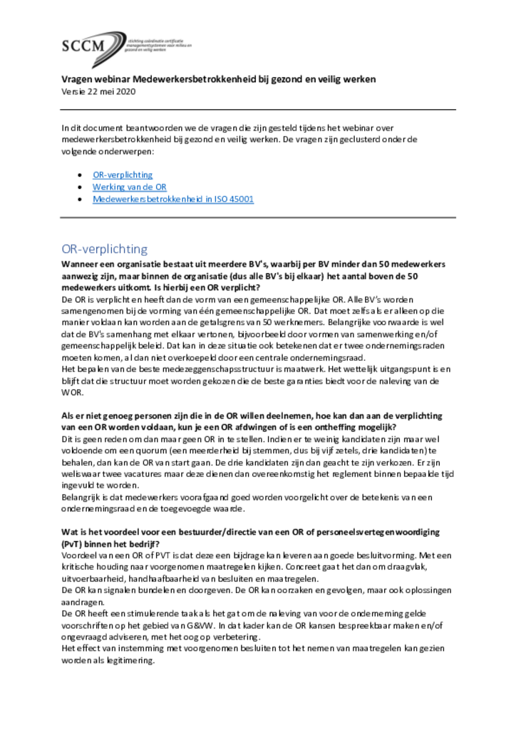Webinar Medewerkersbetrokkenheid gezond en veilig werken - vragen en antwoorden